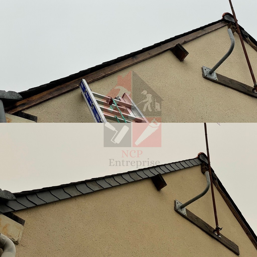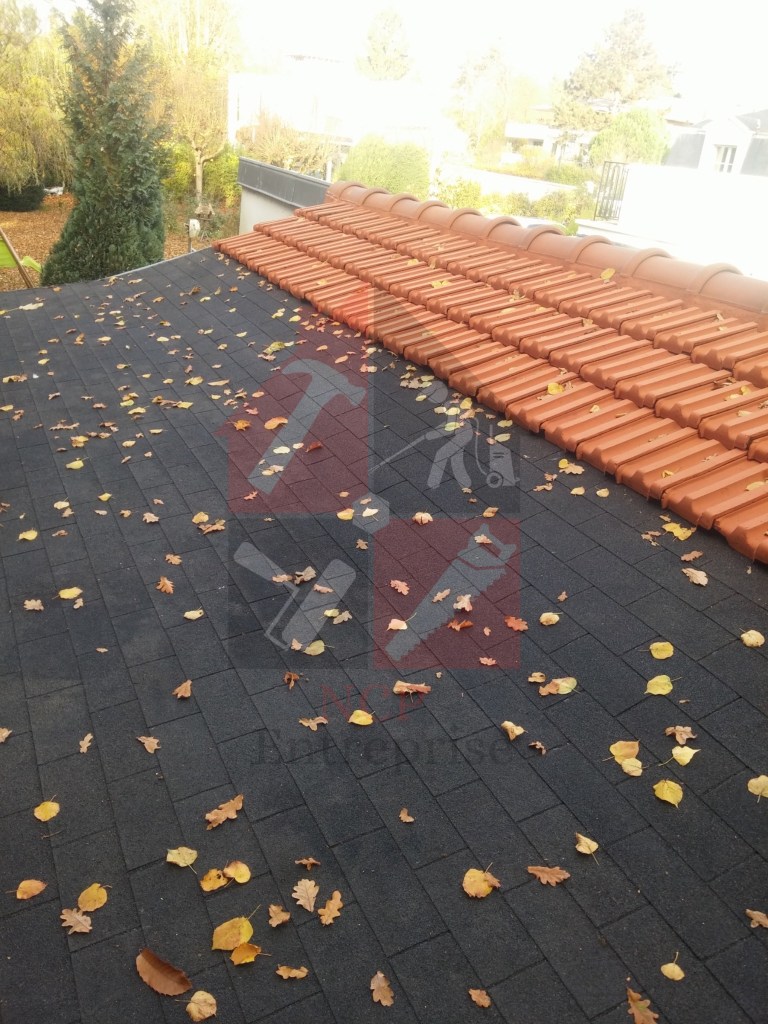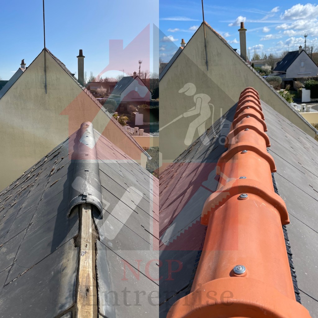 Changement d’un faitage ardoise et fibro en faitières en terre cuite
